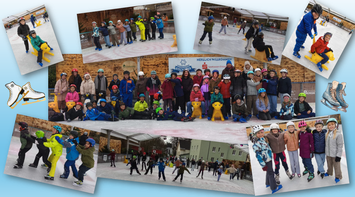 Unser Ausflug der beiden 4. Klassen zur Wasserburger Eislaufbahn im Rahmen des Wintersports war ein besonderes vorweihnachtliches Highlight. Mit Begeisterung und vollem Einsatz begaben sich die Kinder auf die Eisfläche und drehten dort fröhlich ihre Runden. Unser herzlicher Dank gilt der Stadt Wasserburg für die großzügige Übernahme der Bus- und Eintrittskosten sowie der netten und unkomplizierten Organisation vor Ort.