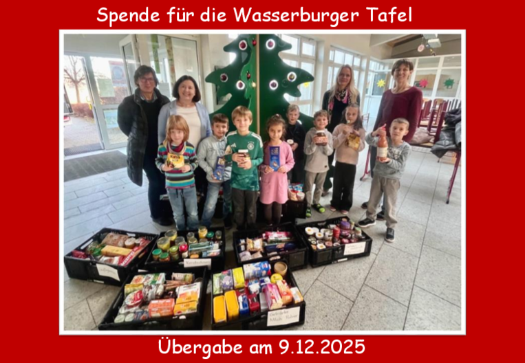 Alle Spenden wurden pünktlich vor Weihnachten am 9.12.25 von Frau Renate Steinbichler und ihrem Team von der Wasserburger Tafel abgeholt. Mit großer Freude und besonderem Stolz überreichten die Kinder gemeinsam mit der Schulleitung, Frau Margit Joppich und Frau Helga Block alle ihre Spenden. Die gelungene Aktion wurde vom Elternbeirat unter dem Vorsitz von Frau Dr. Ursula Winkler-Budenhofer unterstützt. Ein großes Dankeschön an alle Reitmehringer Familien, die sich an dieser Spendenaktion beteiligt haben.