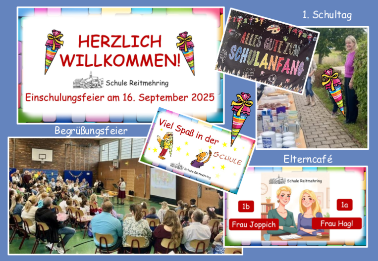 43 aufgeregte Schulkinder erlebten am 16.09.2025 ihren 1. Schultag an der Grundschule Reitmehring. Begrüßt wurden die ABC-Schützen von den beiden Klasse 2a und 2c mit schwungvollen und gleichzeitig berührenden Liedern. In einer kurzen Ansprache der Schulleiterin Frau Block lernten die frischgebackenen Schulkinder das neue Schuljahresmotto kennen, die "magischen Wörter" für ein schönes Schuljahr: "FREUNDLICH, FAIR und FIT!"