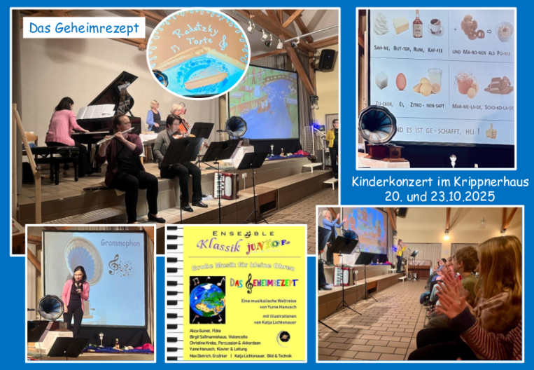 Auch in diesem Schuljahr durften alle Reitmehringer Schulkinder das musikalische Konzert "Das Geheimrezept" im Edlinger Krippnerhaus besuchen. In diesem Jahr ging es um das Rezept der weltberühmten Radetzky-Torte. Gemeinsam reisten die Kinder in zahlreiche europäische Länder und sammelten dort alle Zutaten. Die gekonnt von den Musikern vorgetragenen klassischen Musikstücke rissen die Schülerinnen und Schüler mit, es wurde geklatscht und immer wieder gab es spontanen Aplaus. Besonders große Begeisterung war bei allen Mitmachelementen zu spüren. Ein herzliches Dankeschön an die herausragenden Künstler und an den Elternbeirat, der diesen schönen Ausflug großzügig bezuschusst hat. Durch den Rückweg zu Fuß bekamen die Kinder noch zusätzlich einen kleinen Wandertag geschenkt.