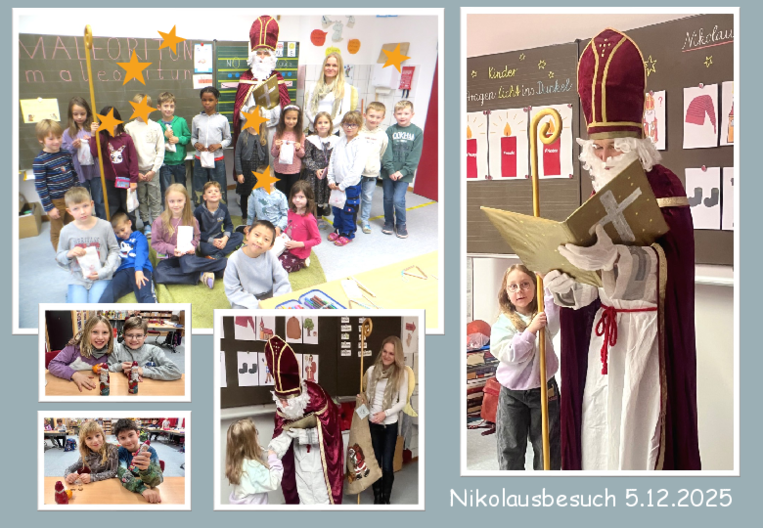 Pünktlich zum 5. Dezember kam der Nikolaus in die Grundschule Reitmehring zu Besuch. Er schaute in allen 1. und 2. Klassen vorbei und lobte die vielen braven Kinder. Nur selten gab er einzelne Tipps, wie das Zusammenleben und -arbeiten in der Schule noch etwas besser funktionieren könnte. Für alle Kinder hatte der Nikolaus eine kleine Tüte mit einem Schokonikolaus, Mandarinen und Nüssen als Belohnung dabei. Die Schülerinnen und Schüler bedankten sich herzlich mit stimmungsvollen Liedern und Gedichten, in einer Klasse wurde der Nikolaus sogar noch extra mit kleinen Aufmerksamkeiten beschenkt. Weil der Nikolaus am Nikolaustag sicher alle Hände voll zu tun hatte, stellte er seine Gaben für die Dritt- und Viertklässler einfach vor die Klassnzimmertür, Danke an alle, die sich tatkräftig für diese schöne Tradititon eingesetzt haben!
